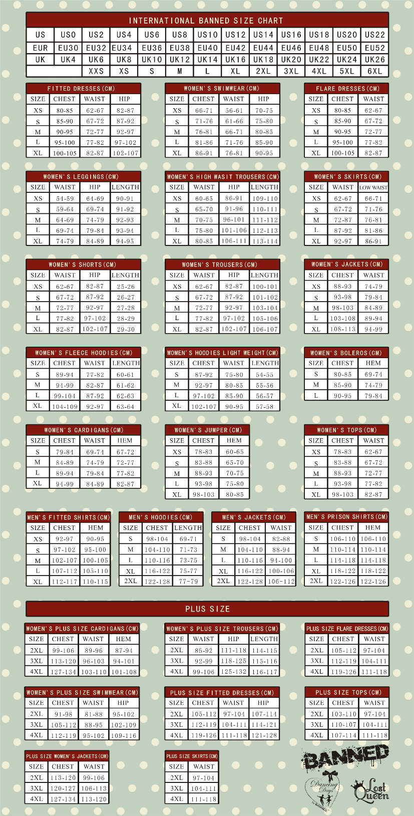 Banned Apparel Ltd | Size Chart